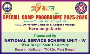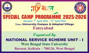 The NSS special camp organised by the NSS units of West Bengal State University has been inaugurated by Hon’ble Vice Chancellor Prof. Debabrata Mitra on 7th April,2026, in the presence of Deans, Faculty of Post Graduate Studies, Prof. Chandrava Chakraborty, Director, IQAC and University Librarian Dr. Sushanta Banerjee.